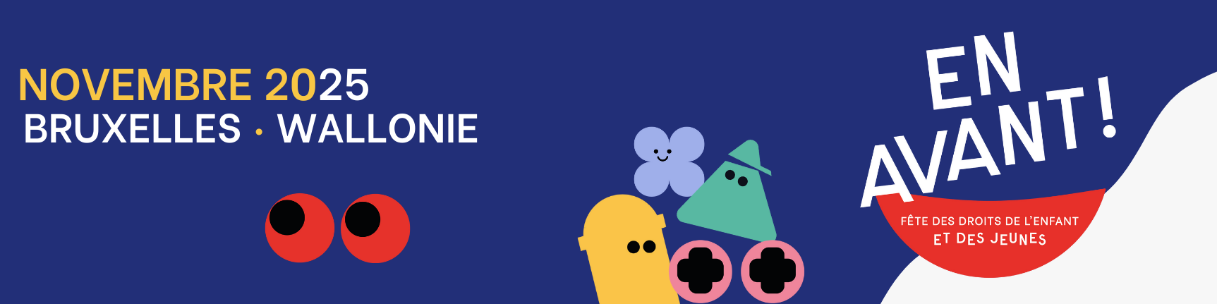 En Avant ! est une fête gratuite, ludique et inclusive pour célébrer les droits de l’enfant avec les familles, les écoles et les professionnel·le·s de l’enfance. Chaque année, elle est célébrée à l’occasion de la Journée internationale des droits de l’enfant, le 20 novembre. Deux gros évènements sont prévus à Bruxelles et en Wallonie qui proposent des activités festives aux enfants et jeunes de 0 à 18 ans.